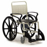 Кресло-коляска имеет 4 маленьких и 2 больших задних съемных колеса. Большие колёса позволяют пользователю передвигаться на стуле без посторонней помощи. Тормоза на каждом колесе позволяют зафиксировать кресло на месте, если это необходимо. Подножки кресла-туалета можно снять.